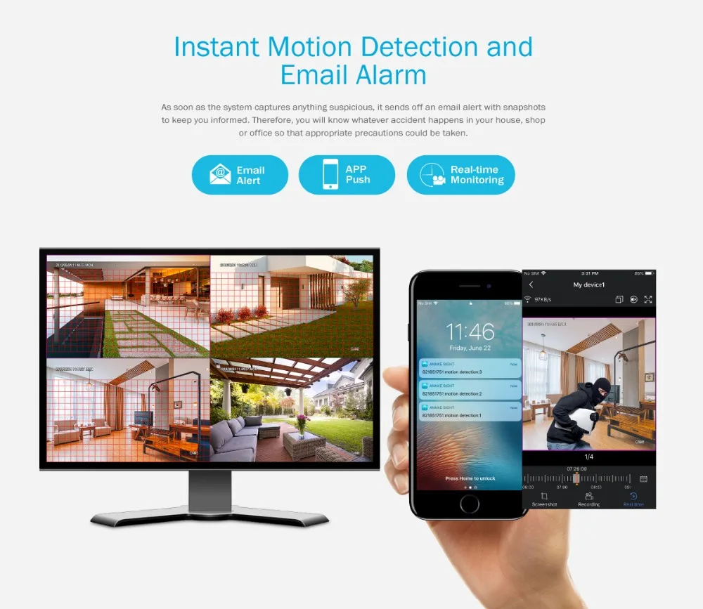 · Instant motion detection email alert