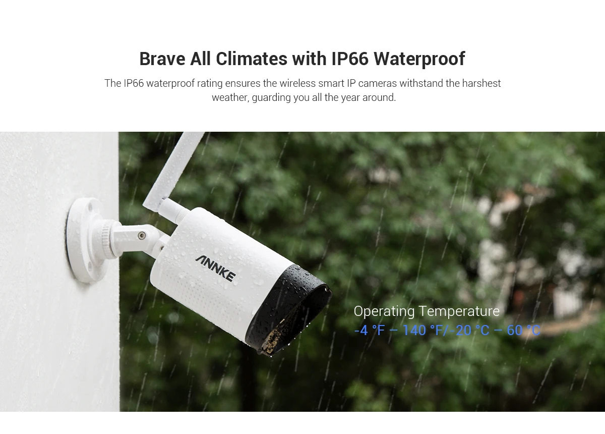 Built with IP66 weatherproof housing fit for indoor and outdoor use, the cameras can withstand the most terrible climate that the mother nature brings. Just bring it on, whether it is rain, snow, sleet or wind, the cameras will never disappoint you.
