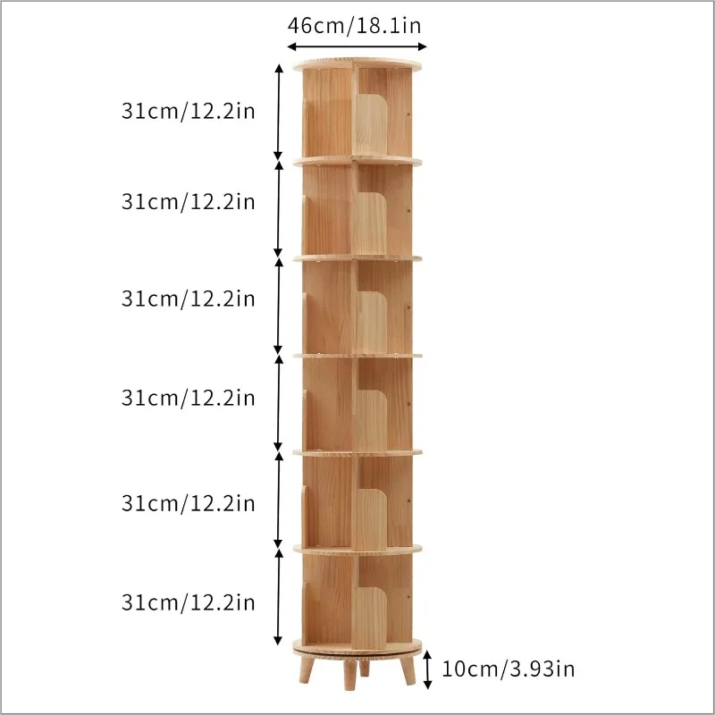 Free Assembly: You can assemble the rotating bookshelf into one, two, three, four, five, or six tiers according to your own needs. Different heights have different functions, such as serving as a coffee table, display cabinet, organizer, and so on.
